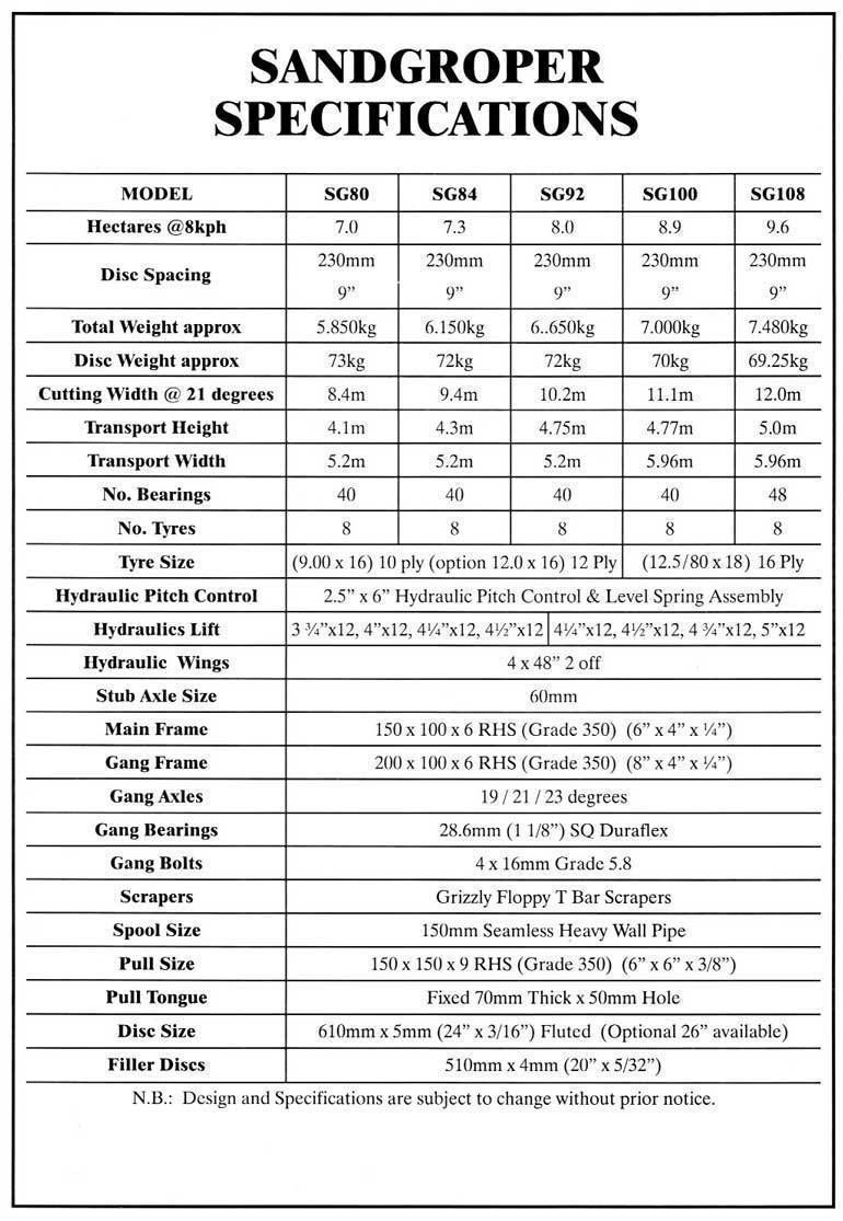 • Uses existing proven features. Up To 26” discs to still provide effective cut out on 9” spacings. Choice of 3 gang angles to allow full cut out in shallow working. The Sandgroper is still a true tandem offset sics plough.
