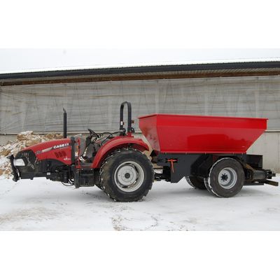 Let us introduce the OJB-Industries self-propelled sand slinger. It is made for bedding stalls with sand compost or saw dust. The side slinger comes as a self propelled unit or a pull type trailer. It will hold 8 ton and is extremely maneuverable so you can get around in your barn without the need for extra doors. The closed apron chain in the hopper is made of all wear resistance AR400 steel. The heavy industrial mining belt with double drive motors shoots the sand in a equal layer into the stall. Download our brochure with more technical specifications.
