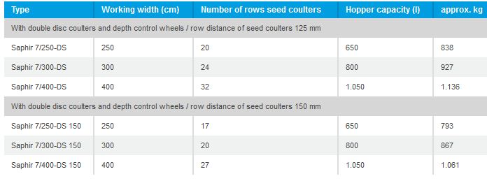 - Available for mounting directly on a cultivator, on a power harrow or compact combination or as as Saphir AutoLoad for three point linkage mounting, the Saphir has hopper volumes of 650 to 1,100 litres.