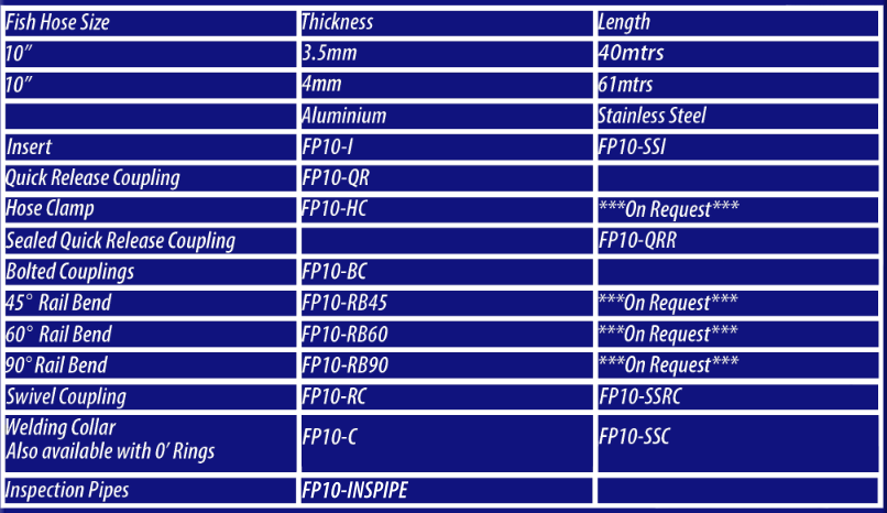 Sizes ranging from 8" to 20" are more than enough to cater to any vessel. Manufactured mainly from Marine Grade Aluminium and Stainless Steel, there is no surprise how durable and strong these pumps are. For extra protection a rubber bumper is vulcanized to the casing. Sea Quest Fish Pumps are available for purse seining or trawling applications. Storage cradle are also available, manufactured completely from Stainless Steel.