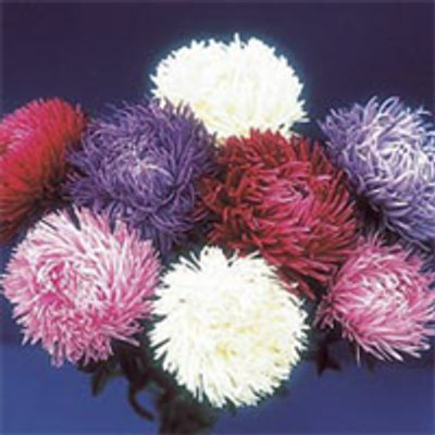 Asters are favorites for late summer cutflowers and flower borders. They can be planted directly into the garden after danger of frost or started indoors for earlier bloom. Huge 4 inch blooms filled with soft, twisted petals are produced in great numbers on 24 inch bushy plants. Includes rich shades of blue, pink, rose, salmon, purple, yellow and white. Often referred to as 'tiger paw' asters. Full sun.