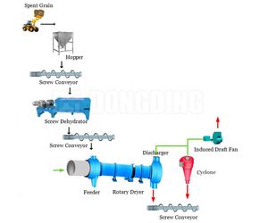El sistema de secado de granos de desecho de la cervecería se compone principalmente de equipos de deshidratación, fuentes de calor, transportadores, alimentadores, tambores, máquinas de descarga, ventiladores de inducción, máquinas de descarga, gabinetes de distribución, sistemas de trituración, sistemas de embalaje y otros componentes. Se puede seleccionar el proceso de acuerdo con las diferentes lías.