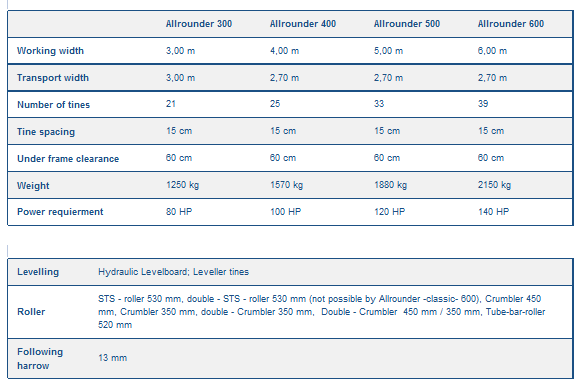 The Allrounder is, as the name indicates, a very universal machine for seed-bed and secondary stubble cultivation. The Allrounder can work the whole year undertaking different tasks:
