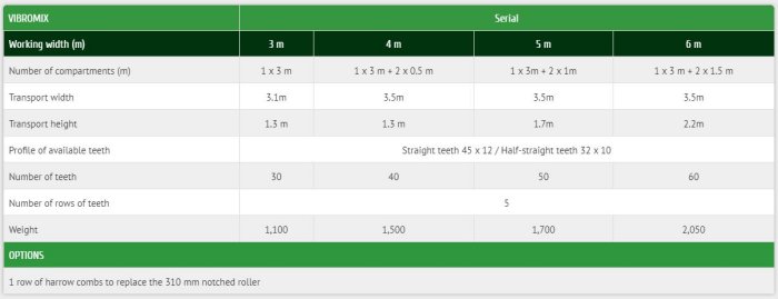 • Frame of 5 rows of vibrating teeth for great clearance.