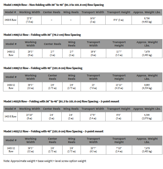 - Mounted 12-row: 3-pt. hitch adjustable to Cat. III (Model 1403)