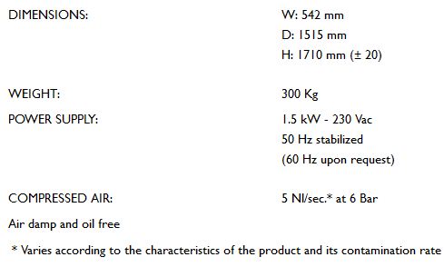 Automatic cleaning system: SELEKTA sorters are featured by an automatic cleaning system inside the sealed optical box. A brush activated by a piston cleans the glass that protects the optical sensors: the continuous proper functioning of the machine is thus guaranteed.