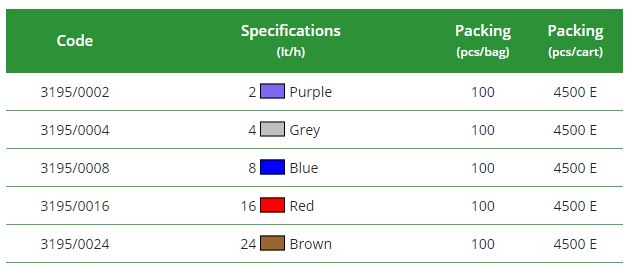 AGRAS - Model SC/ND 3195 -Self Compensating and Self-Cleaning Dripper