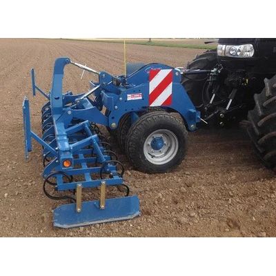 The SUMOSAURE COCHET tire compactor is a pushed tool with 8 or 12 pneumatic wheels depending on the model. It consists of a train of 4 central wheels with a width corresponding to the inside track of the tractor wheels as well as 2 half-trains of 2 external wheels (8-wheel model) or 4 wheels (12-wheel model) allowing to re-support the parts of the plowing which have not been supported by the tractor wheels. The SUMOSAURE is compatible whatever the pneumatic equipment of the tractor: single, twin or wide wheels. Characteristics: Tractor power: up to 200 CV Recommended for tractor: 4WD Self-steering by compensating springs Support width: 165 cm 4 wheels of 10.0 75-15.3 (or equivalent) Weight according to equipment: 600 Kg Weight carrier as standard 2 landing gear as standard Fitted with LED work lights as standard