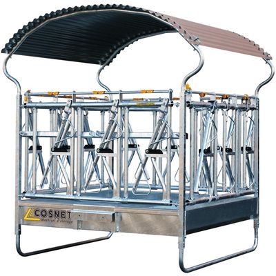 The RTC II Self-Locking Yoke Hay Rack is designed with advanced features to enhance the management of hornless cattle herds. Equipped with four headlock panels that incorporate 'comfort SR' stall headlock panel technology, it is intended to provide ease of use and security for both animals and handlers. This hay rack includes an anti-choke system, which reduces the risk of incidents, and employs a patented elastic spring system to facilitate flexible handling. Enhanced by quick-release polymer tabs and an automatic handle, it ensures efficient usage. The structure is protected by a roofing that spans 2.25 meters, offering shelter and safeguarding the hay from environmental elements. With optional accessories for reinforcement and protection kits, the RTC II hay rack can be customized to suit various needs within livestock operations, reinforcing Cosnet's commitment to providing durable, innovative agricultural solutions.Most popular related searches