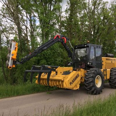 Self-propelled 400 hp mulcher with front mulcher and 12 m side arm.