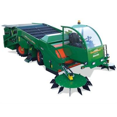 The 20125 evolution harvester, the most powerful model in the range, has been designed for large-scale orchards. It is equipped with a powerful and reliable John Deere engine reducing fuel consumption and emissions, as well as vibrations and noise. The “Super profiled” cabin, with 3 closed sides and hydraulic lateral shifting, protects without limiting visibility; the operator can choose to operate by foot pedal or joystick, and he has total control of the machine by means of the 7” colour display of the MMC.