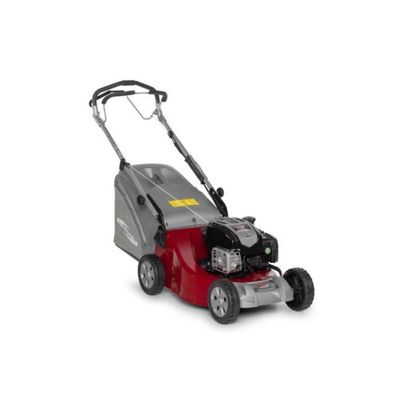 Self-propelled lawnmower with 163 cc Briggs & Stratton engine with ReadyStart and 70-litre grass collector. Can also be used in rear discharge or mulching mode.