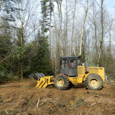 Self-propelled wheeled mulcher, for the maintenance of partitions and routine brushing work: maintenance of hunting lines, cleaning under power lines, around gas pipelines, railways. Moteur Cummins QSB6.7 - Puissance 270 cv. Poids 8700 kg avec broyeur.