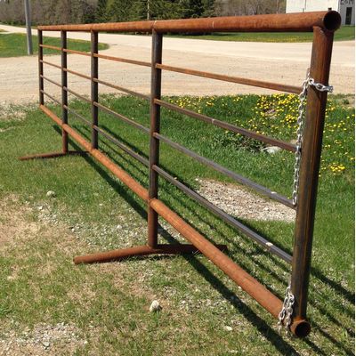 Tuff Self Standing Regular Panels are manufactured with 2 7/8″ diameter pipe frame and 1″ square tubing rods at 8 1/2″ centre to centre spacing. The arched foot design adds stability on uneven ground. Standard panels are 25′ long x 5 1/2′ tall and weigh approximately 800 lbs.