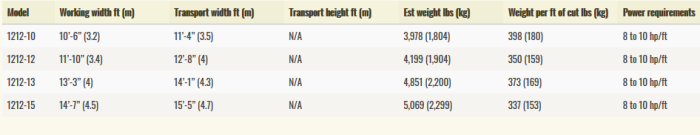 - Tractor horsepower requirement range 5 to 8 horsepower per foot of cut