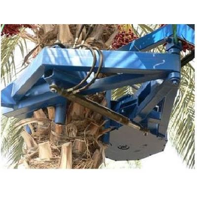 Each cluster of dates is wrapped in a net. The shaker gently shakes the tree trunk and only the ripe fruit falls into the net. The crew following the shaker, simply opens the net and collects the ripe dates.