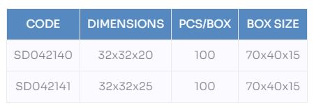 Code: SD042140. Dimensions: 32x32x20. Pcs/Box: 100. Box Size: 70x40x15.