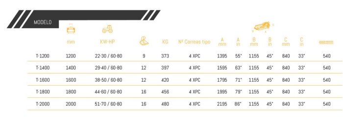 Mulcher designed for tractors between 30 HP to 80 HP for the maintenance of vegetable mantle and for the elimination of remains of pruning up to 5 cm.