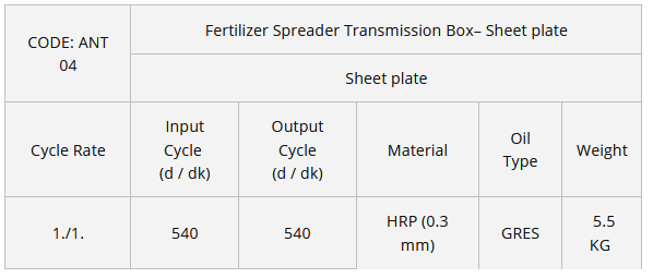 Farmanko - Model ANT 04 -Sheet Plate Fertilizer Spreader Transmission Box