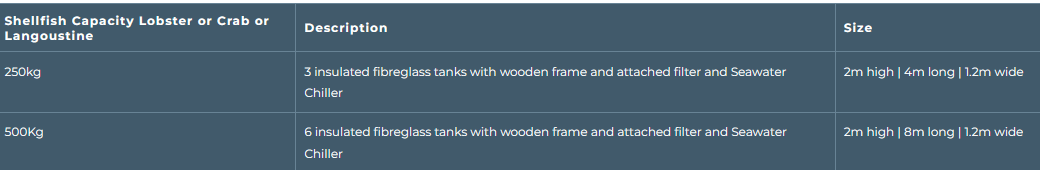 Prices for our Shellfish Holding Tanks start at £12,500 + VAT + delivery by pallet courier. Some installation is required and our team can do this if required for an extra charge.