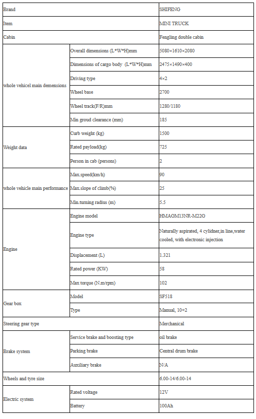 Shifeng - Model SSF 1030HCWB2 -Mini Truck with Gasoline Engine