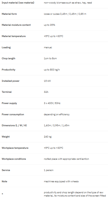Tomasser RK15 is a compact, easy-to-use and electrically driven shredder designed for chopping loose straw or small straw cubes, small bales. It gives chop lengths from 15-30 mm. Its robust construction ensures that it can handle prolonged use, even for several hours a day, without any issues.
