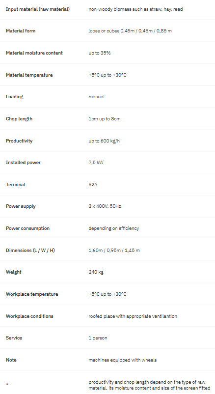 Tomasser - Model RK7 -Shredder for Loose Straw and Small Straw Cubes