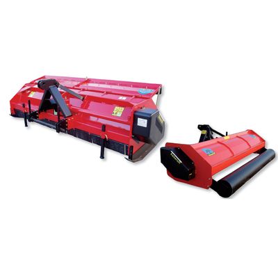Technical features: PTO 540 r.p.m = 1.985 r.p.m. at rotor up to model T-2300. PTO 540 r.p.m = 1.680 r.p.m. at rotor from model T-2650. Belt side drive. 01 to 05 or 06-type blade / hammer choice. Shredding height control by runners, wheels or roller. 3-point hitch category II. PTO- shaft with free wheel. 2-plate coupling up to 2,30 m width. Automatic coupling from 2,65 m. width.