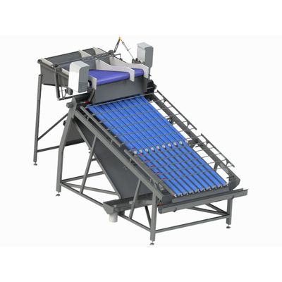 An infeed basin washes and cools the products before peeling. Ensuring an even cool temperature of the product maintains the integrity of the meat before peeling. An oscillating arm ensures a single layer of products on an infeeding belt and drops the product down onto our specialized rubber rollers(™). The rubber rolls rotate in opposite directions, with a specialized engineered friction surface, grips the shell while protecting the meat. A continuous flow of water on the product ensures optimum lubrication. On the second half of the peeler, especially smooth steel rollers, help to separate any partially loose shells. After the rollers the product is collected into a narrow basin for washing.