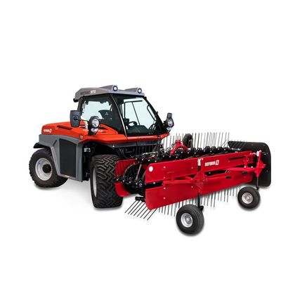 Side delivery belt rakes are ideal for swathing and gathering hay on slopes. Their compact and light-weight design delivers a very low operating weight, so they can be used in virtually all locations. The short mounting and perfect ground adjustment of the Reform angle swing lift delivers the best raking quality and excellent forage protection. Equipped with up to 14 tine arms and working widths from 2.3 to 2.7 m, the side delivery belt rakes can be individually adapted to the Metrac.