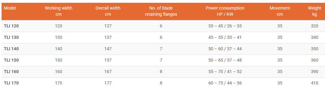 Rotary tillers with hydraulic or manual lateral movement for tractors from 35 to 75 HP -from 26 to 56 KW. For both the version: with hydraulic lateral movement and with manual lateral movement, sliding is always on chrome stem with low coefficient of friction guide. The right side of these machines is rounded to permit at the operator of work near at the tree without damaging them. On request is possible to assemble the 4 speed gear box in a central position. Lateral dive is with gear. We project and realise ours rotary tillers with diligence to ensure a product that needed a minimum maintenance and a long life.