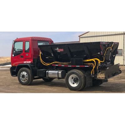 Truck Mount Side-Shooters are used to spread sand or sawdust in many applications, including free-stall barns. The Truck Mount Side-Shooter uses a main conveyor to transfer the material to a cross-conveyor that dispenses the material 3 ft to 25 ft.