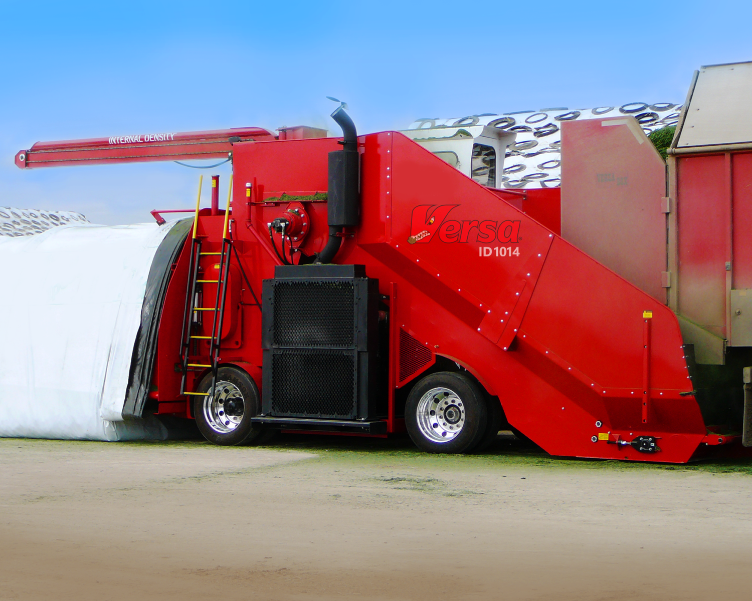The ID1014 Versa Silage Bagger is our maximum capacity silage bagger with a capacity that will keep up with two large forage harvesters. Made with a structural steel frame, this high-power bagging machine comes with a 550 HP (413 KW) engine and long tunnels handling 8-14 tons of bagged materials per minute.