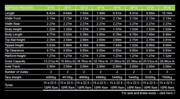 The Suffolk Silage Trailer uses a modern design to optimise strength to weight ratio. Using the latest press breaking technology we engineer the strength in our trailer without adding unnecessary weight and with intelligent use of materials we create a unique monocoque construction. The Suffolk Silage Trailer has a nationwide reputation for strength and durability, with an impressive array of standard features and a wide choice of options you can build the Suffolk trailer to your exact requirements. Suffolk silage trailers are standard with a 2.0m axle track, 10 stud axles and heavy duty mono leaf springs using radius arms with replaceable rubber/nylon bushes.