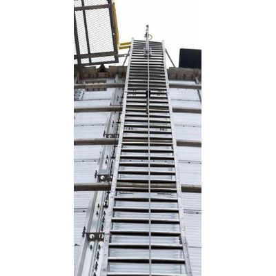 Behlen offers two options for ladders. Ladders with a hoop and strap cage and double-wide platform.Straight ladders with fall restraint cables.