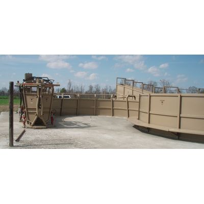 The tub panels are made to be 5 ft tall and are cemented into the concrete for added strength.   The wedge alley is 5 ft tall and made to handle 4 weight cattle all the way up to your larger bulls without adjustment or cattle turning around.  No-backs are placed in the alley to keep cattle from backing out of the alley.