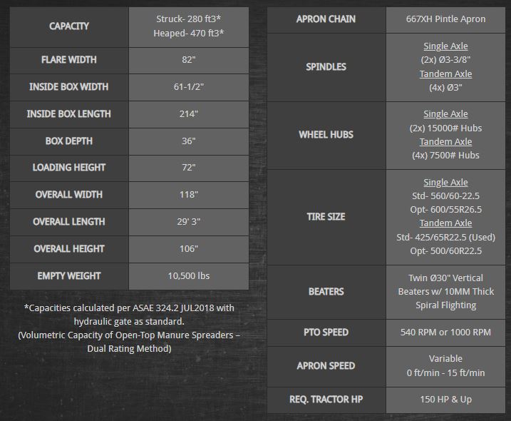 An optional Stainless Steel Spread Pan ensures good distribution of material that may otherwise make it passed the beaters. SAE 304 Stainless Steel construction ensures it won`t rust or corrode with highly acidic manure such as poultry litter.