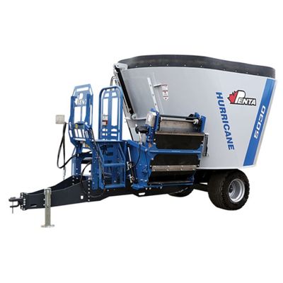 Features: Hurricane Auger - Shape Your Mix: The largest challenge facing a TMR mixer is the ability to process forages with a variety of supplements such as salts and fine minerals. This process can prove to be time consuming and costly. Our patented Hurricane Auger has been designed to produce better mixes by allowing forages to circulate faster through the mix, resulting in quicker processing and mixing times. Penta Hurricane Augers are equipped with patented cut outs that allow material to drop through the auger. The falling action complements the regular motion of the ingredients being rotated throughout the tub. This combination of mixing actions has proven effective in producing more consistent mix.