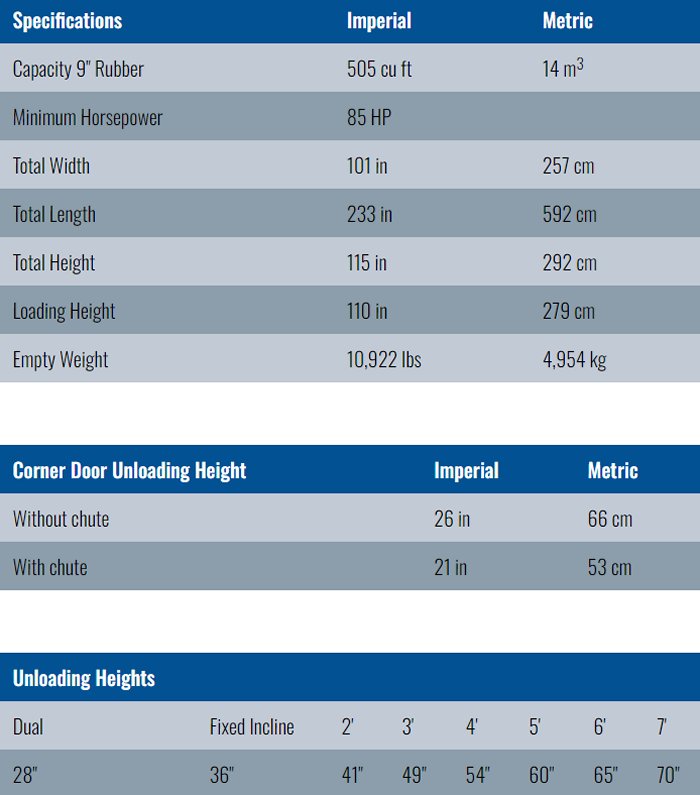 For the most efficient unloading and complete clean out, our front and rear material doors are 44"-48" wide on all models.