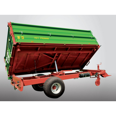 Modern and convenient PRONAR Trailer T671 is the biggest single axle trailer in our range. The Three-way tipping system of the loading case provides high level functionality. Beside this, high quality, reliable and durable axles distinguish them from the competition. The load capacity of five tons makes them enough efficient for small and medium sized farms. The trailer is equipped with sidewalls central locking system and the grain hatch with a lever facilitating of rear unloading.