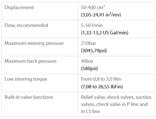Single gerotor steering valve for agriculture, material handling, construction equipment, gardening vehicles, sweepers, and autonomous vehicles. The ST steering unit is the most versatile steering valve for several high performance vehicles and applications thanks to its wide range of specialized options and customizations available. Due to its precise steering controllability, high performance and small size, it could be used in several applications for both road and off-road use, from low horse power machines up to construction equipment.