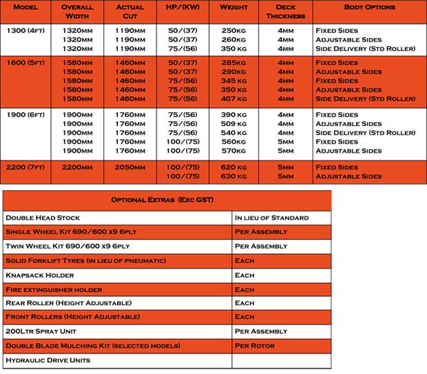 Single Rotor Slashers are designed for 35-100hp tractor range and come in 4 different sizes which have the following features. One piece folded and fully reinforced HU300 grade 4mm or 350 grade 5mm main deck with a easy clean top design. Dual Category pick up pins Cat 1 & 2 with slotted link for contour following. Heavy duty rolled hollow section headstock with RHS rear support arms for ultimate deck strength which is available in either Centre Mount , Offset or double headstock.
