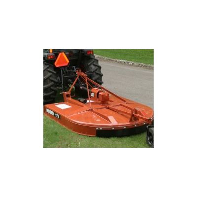 The 172 cuts a 72” swath and is rated for a minimum 35 HP* tractor. Either a shear bolt or a slip clutch protected driveline is available. A laminated tire and wheel with tapered roller bearings, plus front and rear rubber safety deflectors are standard equipment.