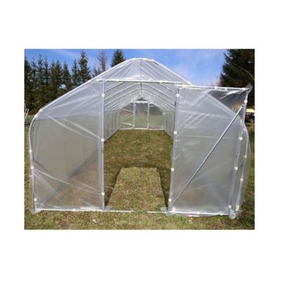 A simple type of construction, made exclusively from steel pipes, available in galvanized and hot-dip galvanized steel versions. The elements are assembled, then secured with screws and nuts to consolidate the modules. A foil, in addition to heat storage and the creation of a micro-climate, acts as a stabilizer for the structure. The film is buried in the ground, increasing its resistance to wind and weather. The customer can choose a facility with one or two doors. Opened on each side, they create a natural airflow, eliminating excess moisture outside the greenhouse. If the temperature is too high, the process is similar.