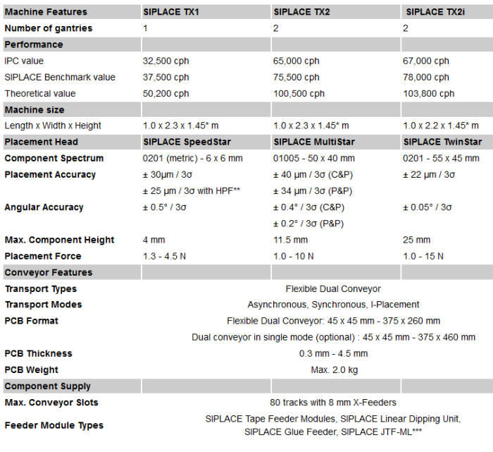 Programmed with the SIPLACE Software Suite and equipped with matching feeder options and our dual conveyor, the SIPLACE TX placement modules support efficient high-volume production, non-stop setup changeovers and state-of-the-art production concepts.