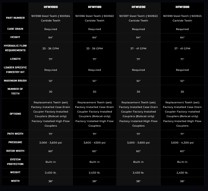 The Skid Steer Forestry Mulcher is an industrial land clearing machine for breaking trails, leveling building sites, and clearing storm damage. This beast is designed with a variable displacement motor that automatically determines the best combination of speed and torque to tackle any situation.