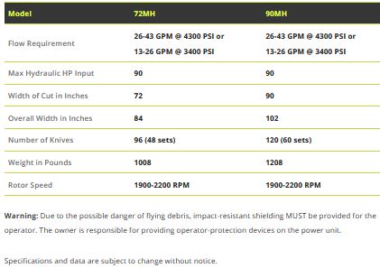 • Mowers work with as little as 10 gpm (38 lpm). Note: 20+ gpm (75+ lpm) is recommended for tall weeds and intermittent brush.