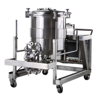 Peak Biotech Slurry Unit are available for silica based resins, in volumen from 20 - xxx L The whole tank is rotating to insure a good mixing of the resin and the slurry buffer The tanks are made in stainless steel and in a sanitary design for the harmaceutical and biotech industry. The units are equipped with a flush bottom valve with no dead volume and are also equipped with a membrane pump for slurry transfer to the column.