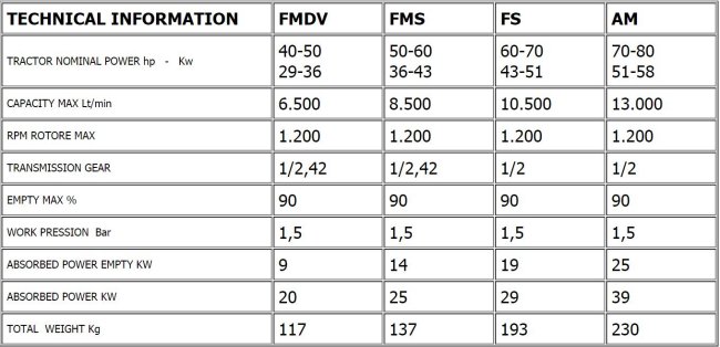 A oil-bath twin-gear multiplier increases the rotary motion of the motor power takeoff (tractor with PTO 540 RPM). Automatic standard drop-feed lubrication; on request it is supplied the force-feed lubrication system through a gear type oil pump.
