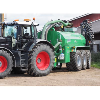 The central mounted pump loading arm swings to either side of the slurry tanker, and has a standard reach of 4.0-m, with an extension to reach depths of up to 5.0-m. It can be equipped for transfer pumping with an additional joint in the boom and emptying of the load through a foam hose. The slurry tanker is filled with a single piston moto pump. Oil consumption is 80 l/min. or 103 l/min when equipped with accessories.